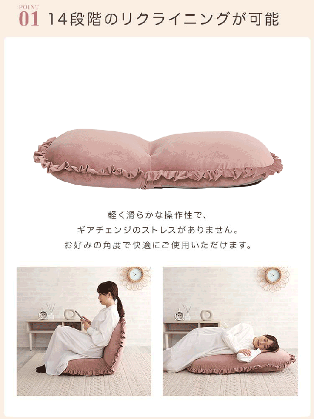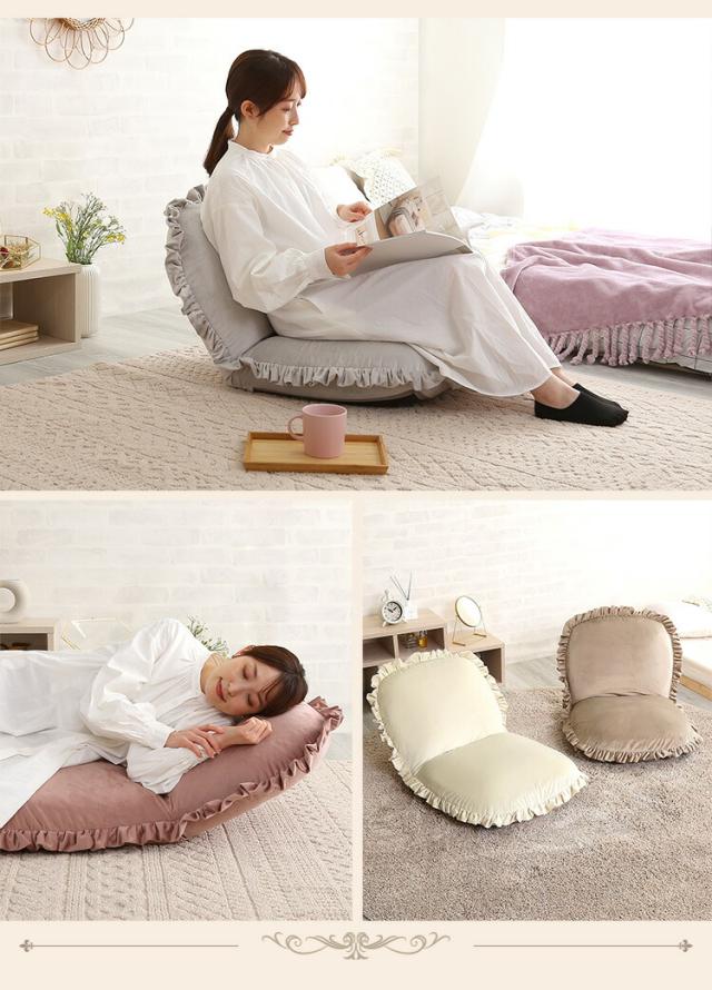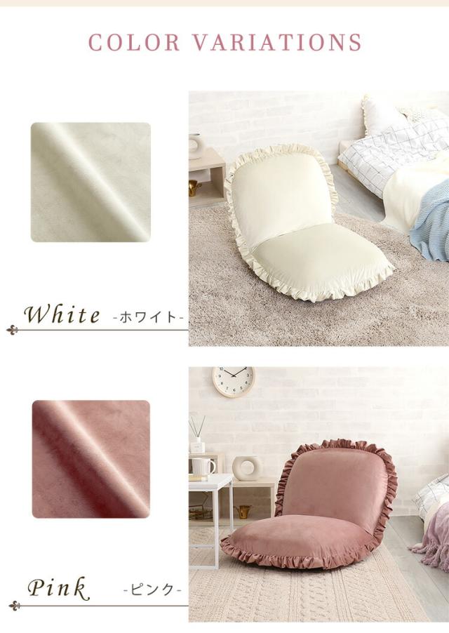 座椅子 ベロア ベルベット かわいい コンパクト 小さい フリル おしゃれ くすみカラー 椅子 イス チェア リクライニング ピンク グリーン ホワイト グレー ベージュ