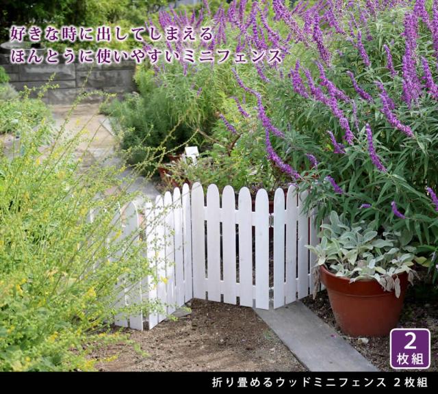 折り畳めるウッドミニフェンス 2枚組 フェンス 木製 ガーデン 柵 パーテーション 仕切り 境界 園芸 庭 屋外 DIY 簡易設置 【代引不可】