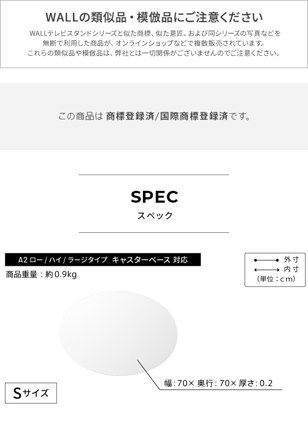 WALL A2対応 キャスターモデル用床保護マット サークルタイプ(Sサイズ) 床保護パネル 床 シート キズ防止 汚れ防止 保護 追加オプション パーツ WALLオプション