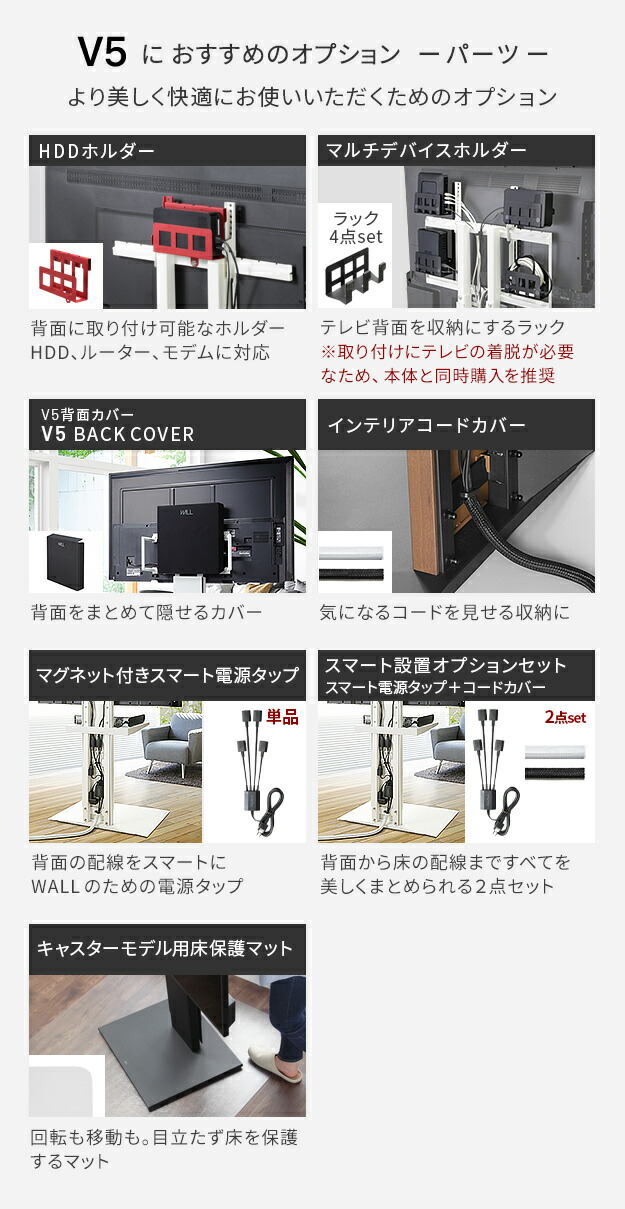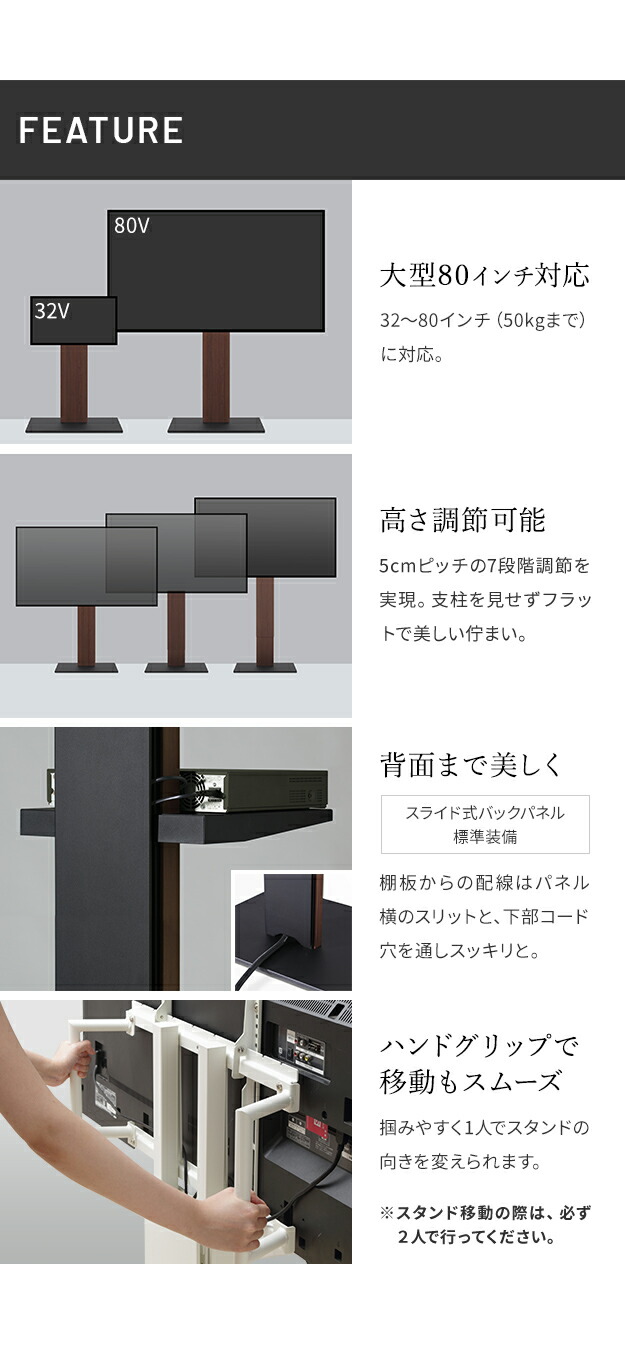 テレビスタンドV5 ハイタイプ 32〜80v対応 大型テレビ対応 震度7耐震試験済 背面収納 コード収納 自立型 キャスター付き テレビ台 テレビスタンド TVスタンド ホワイト ブラック ウォールナット WALLインテリア EQUALS イコールズ