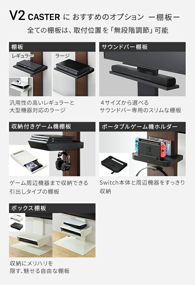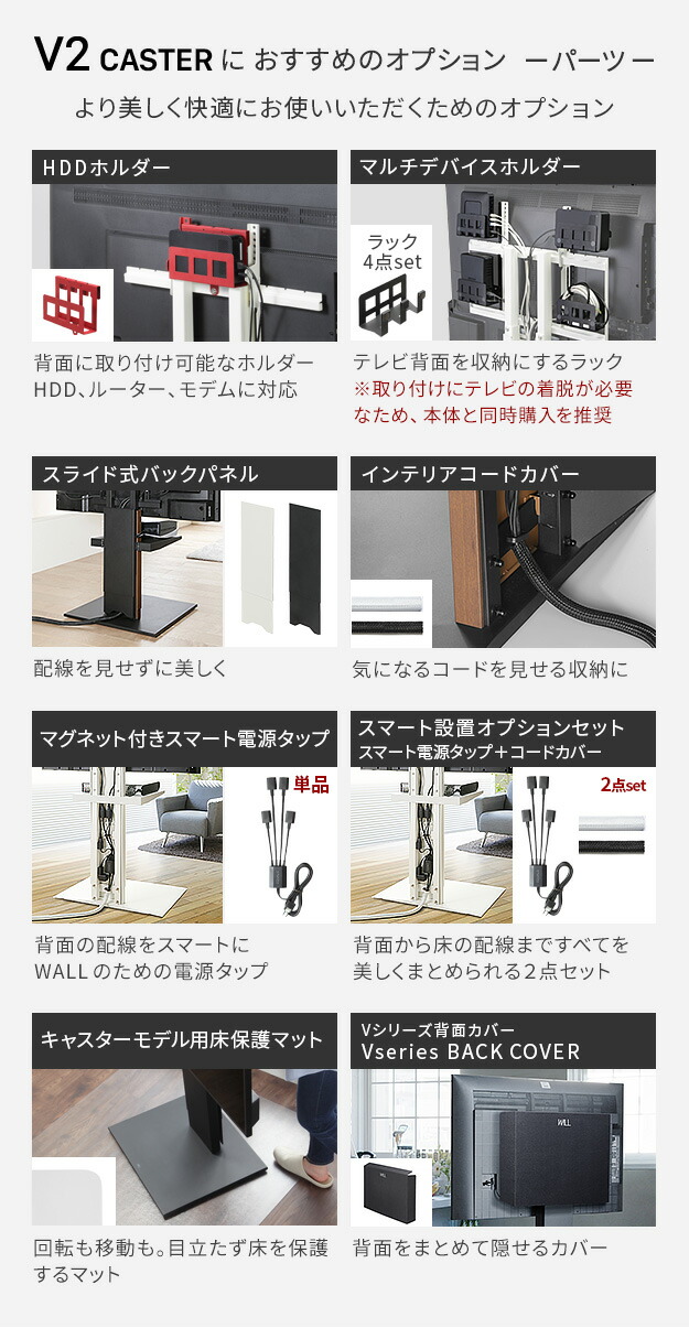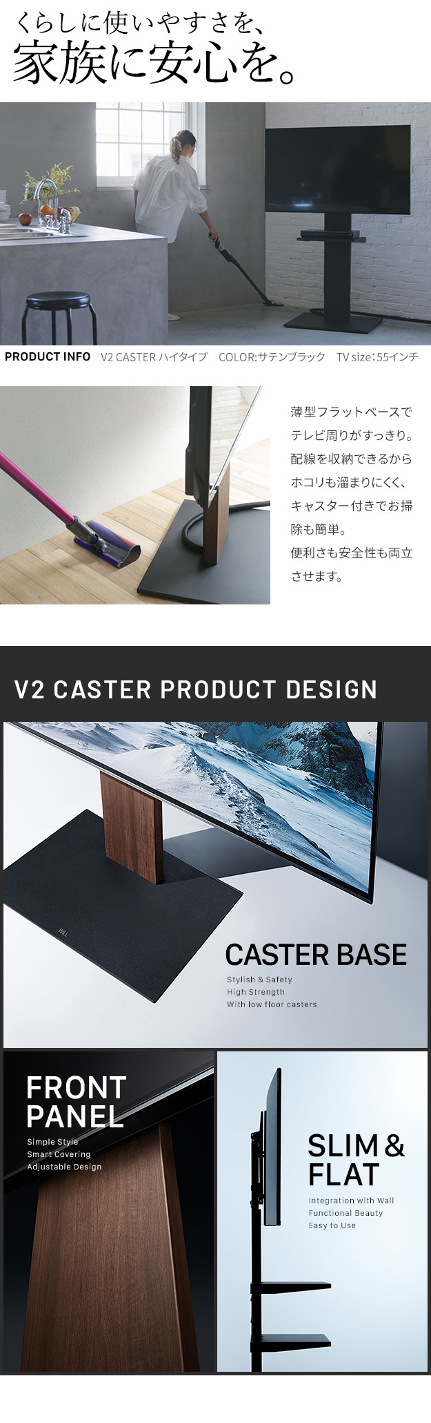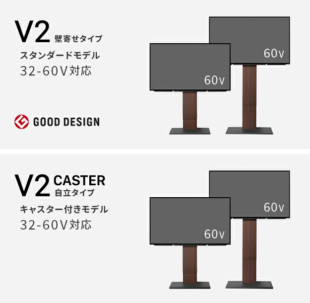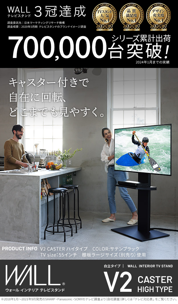 テレビスタンド V2 CASTER ハイタイプ 32〜60v対応 テレビ台 テレビスタンド TVスタンド キャスター付き フラットベース 自立型 背面収納 コード隠し モダン おしゃれ スタイリッシュ 白 黒 木目 ホワイト ブラック ブラウン WALLインテリア EQUALS イコールズ