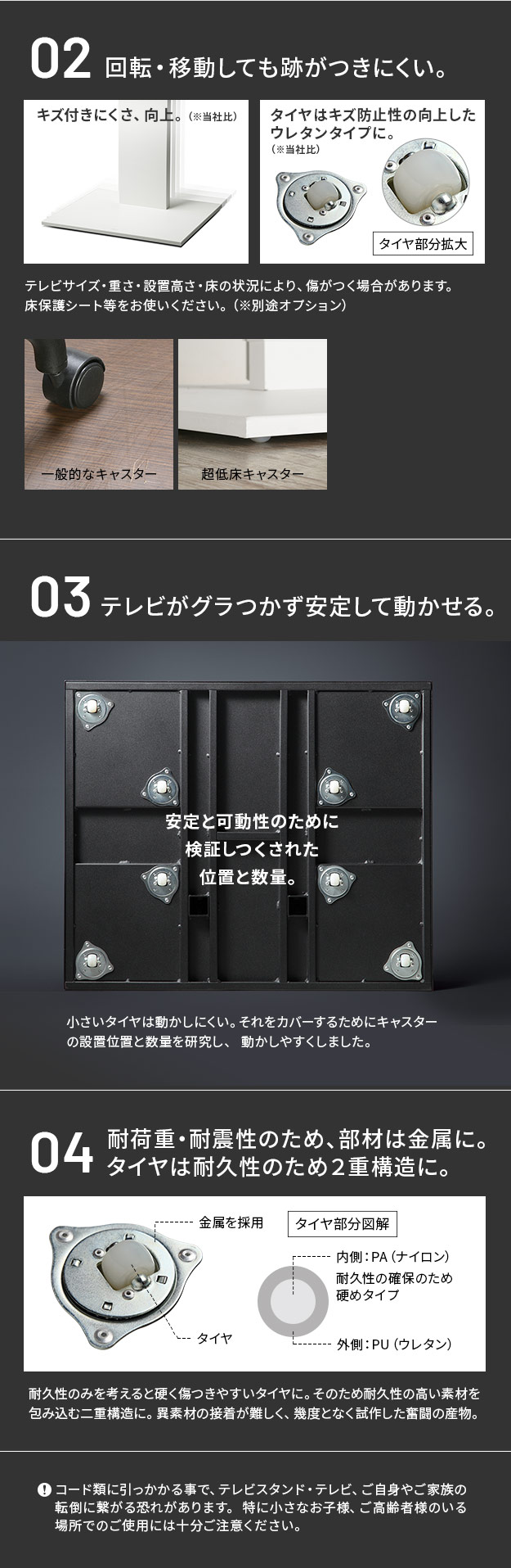 テレビスタンド 自立型 移動式 キャスター CASTER フラットベース ハイタイプ テレビ台 TVラック スチール おしゃれ シンプル 配線隠し 地震対策 高さ調節