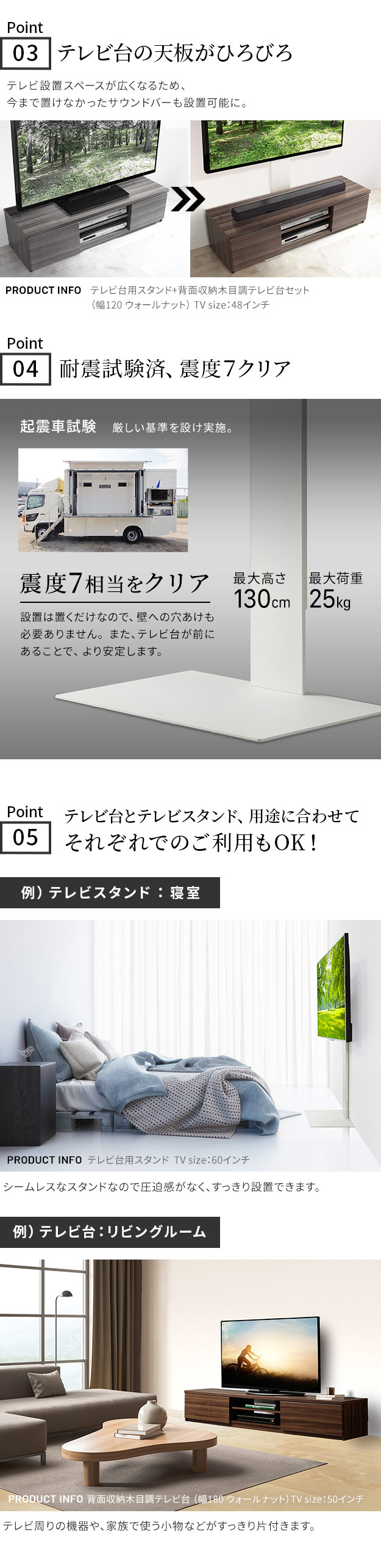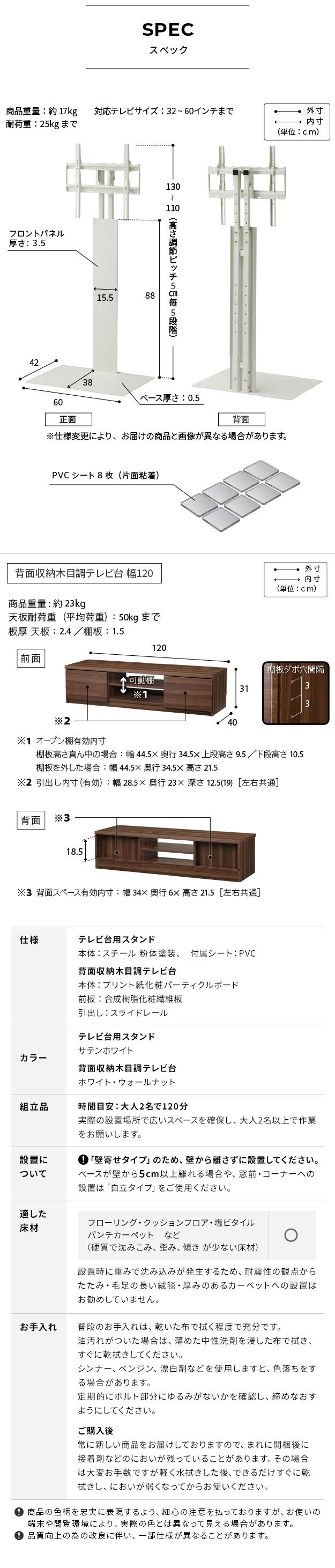 テレビ台用スタンド セット 幅120cm 32〜60v対応 震度7耐震試験済み 背面収納 木目調 テレビ台 WALLインテリアテレビスタンド 壁掛け風 壁寄せテレビ台 TVスタンド テレビボード リビングボード ローボード 背面収納 ホワイト 白 ウォールナット 茶 EQUALS イコールズ