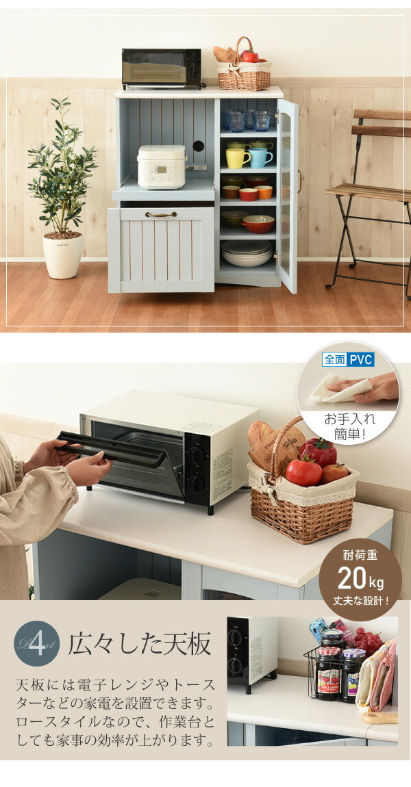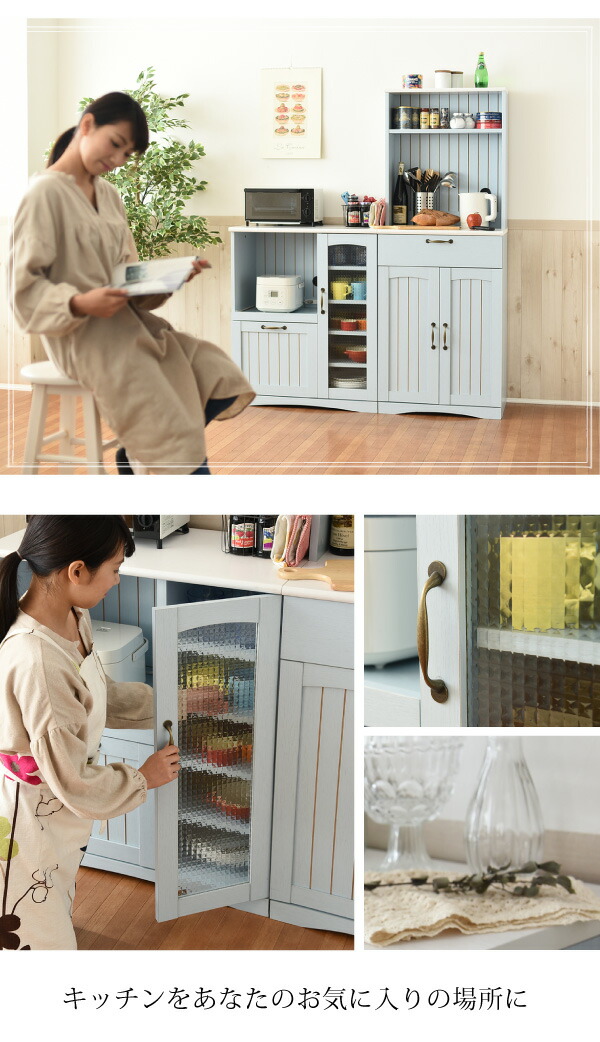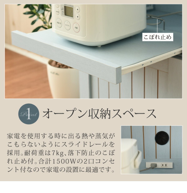 フレンチカントリー キッチンカウンター レンジ台 幅 75 高さ 90 スライド棚 付 コンセント 付 キッチン収納 収納 棚 ガラス扉 姫 シャビーシック カントリー フレンチアンティーク フレンチインテリア 【代引不可】 母の日