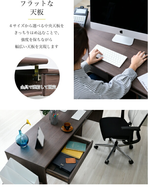選べる4サイズ デスク オフィスデスク 180cm 190cm 200cm 210cm 奥行50 配線収納 収納 ワイド ワークデスク 木製 パソコンデスク 事務所机 オフィス 机 パソコン システムデスク PCデスク つくえ ブラウン 【代引/同梱不可】