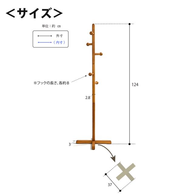 ポールハンガー 木製 北欧 おしゃれ ハンガーラック コートハンガー 帽子掛け かばん掛け 天然木 衣類ハンガー 洋服掛け 省スペース 収納 収納家具 フクダクラフト HP-S1237 【代引不可】【同梱不可】