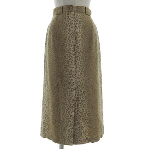 【中古】イタリヤ 伊太利屋 スカート 台形 プリント ラインストーン ロング丈 ヒョウ柄 レオパード ベージュ 茶 7