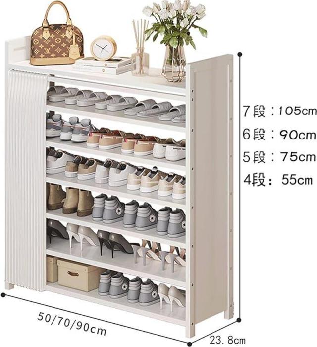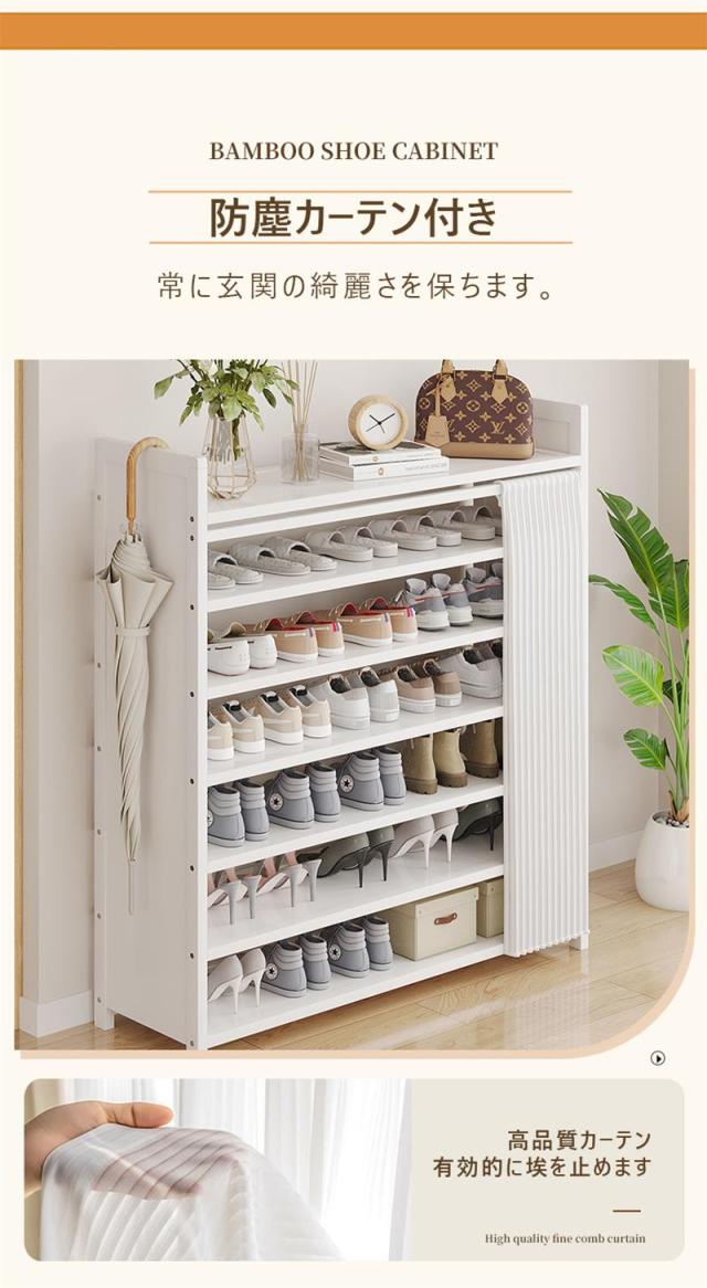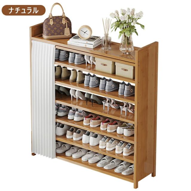 シューズラック 折りたたみ 4段 5段 6段 7段 下駄箱 スリム 靴棚 玄関に靴を効率収納 大容量 天然竹製 幅50 70 90cm 省スペース 防塵カーテン付き 靴収納 玄関収納 防水 防塵 防汚
