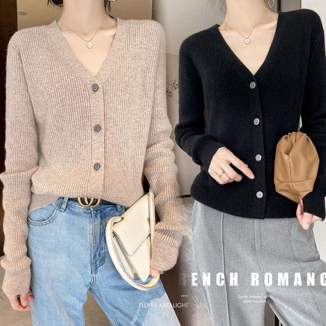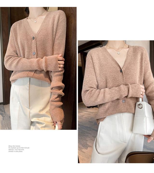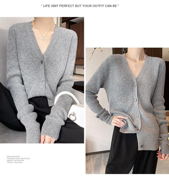 カーディガン カットソー レデイース トップス おしゃれ 可愛い カジュアル お出かけ ニット 春秋 長袖 ショート丈 体型カバー 同窓会 普段着 着やせ 無地 ベーシック MY-045