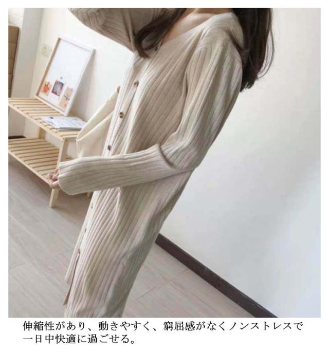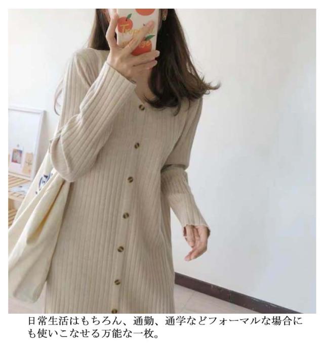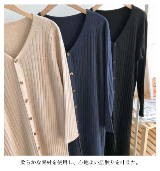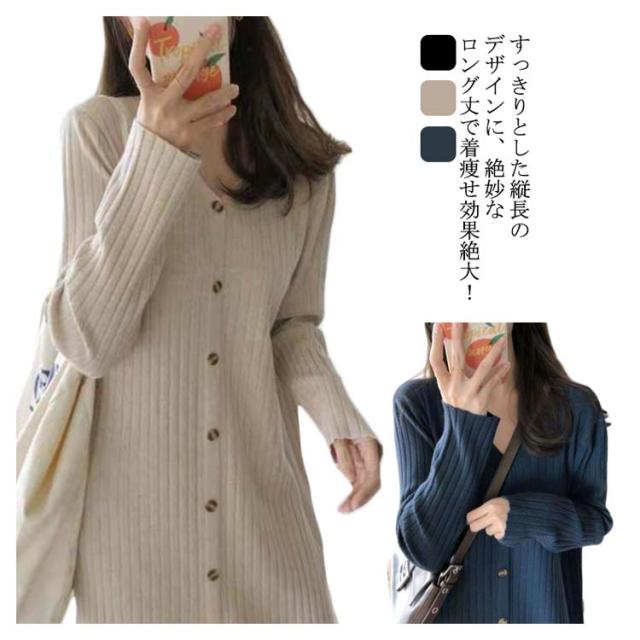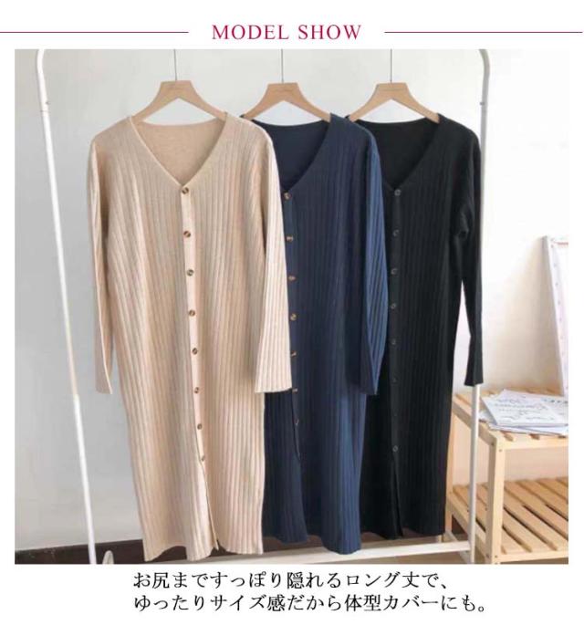 長袖ワンピース ロングカットソーカーディ Vネック 長袖 秋 Vネック 春秋 羽織 ワンピ アウター マキシ丈 ロング丈 Aライン 着痩せ きれいめ コーデ ロングニット