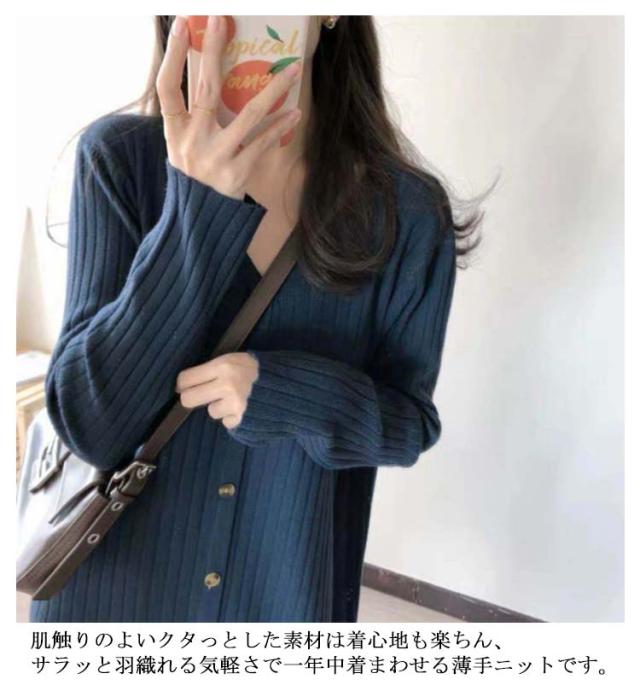 肌触りのよいクタっとした素材は着心地も楽ちん、サラッと羽織れる気軽さで一年中着まわせる薄手ニットです。