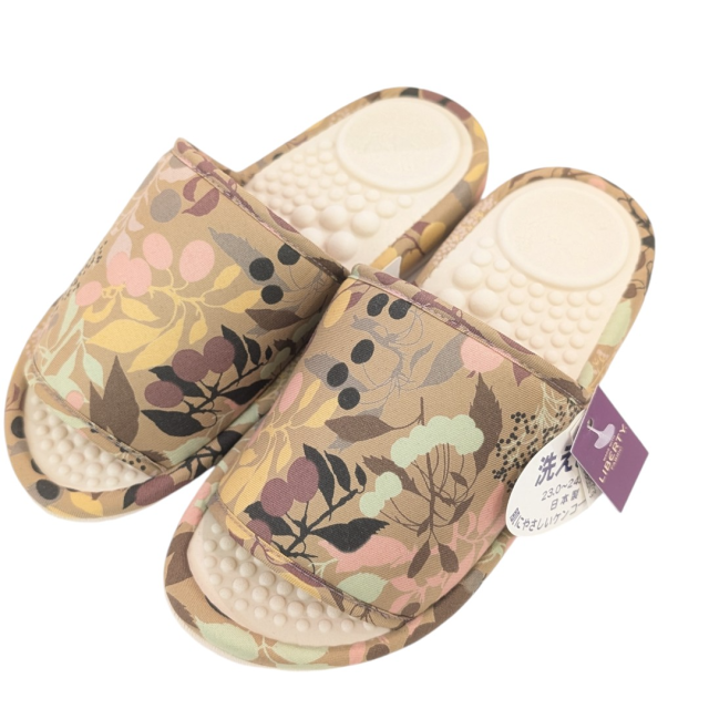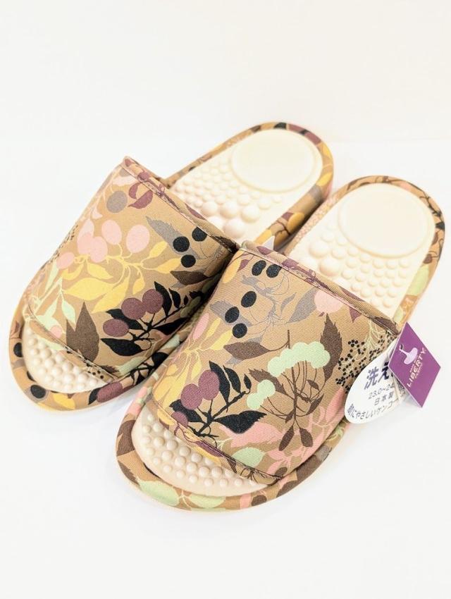 サラダボール リバティ リーフ柄 ベージュ 健康 スリッパ ツボ押し 23.0cm〜24.0cm レディース インテリア 敬老の日 ギフト