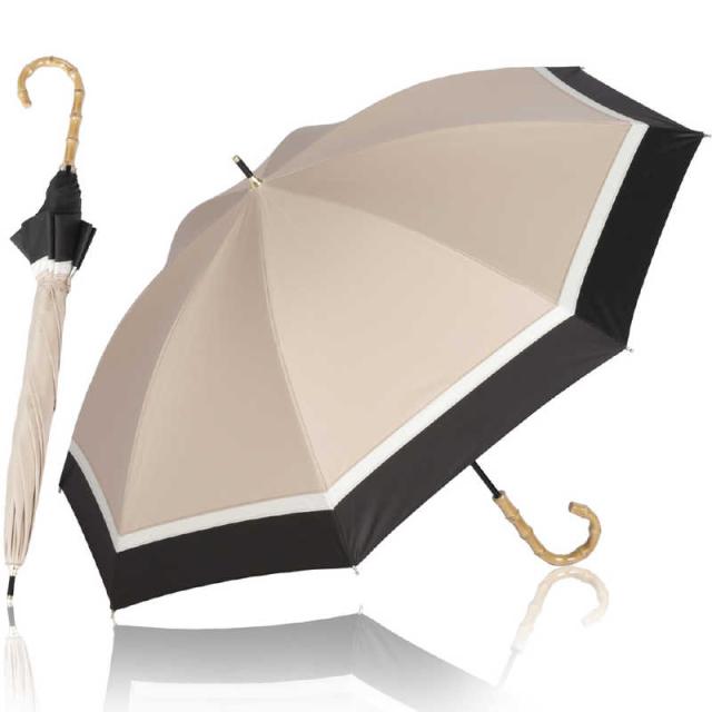 KIZAWA ショート丈日傘 50cm 8本骨 3色ミックス バンブーハンドル [晴雨兼用傘 /50cm] ベージュ×ブラック M503S-081PI-beige-black