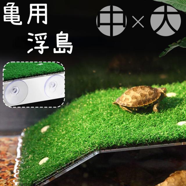 浮島 亀 カメ ペット用 爬虫類 両生類 吸盤 人工芝 芝生 日光浴 日向ぼっこ 休憩 簡単設置 水槽 装飾 レイアウト デコレ