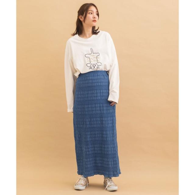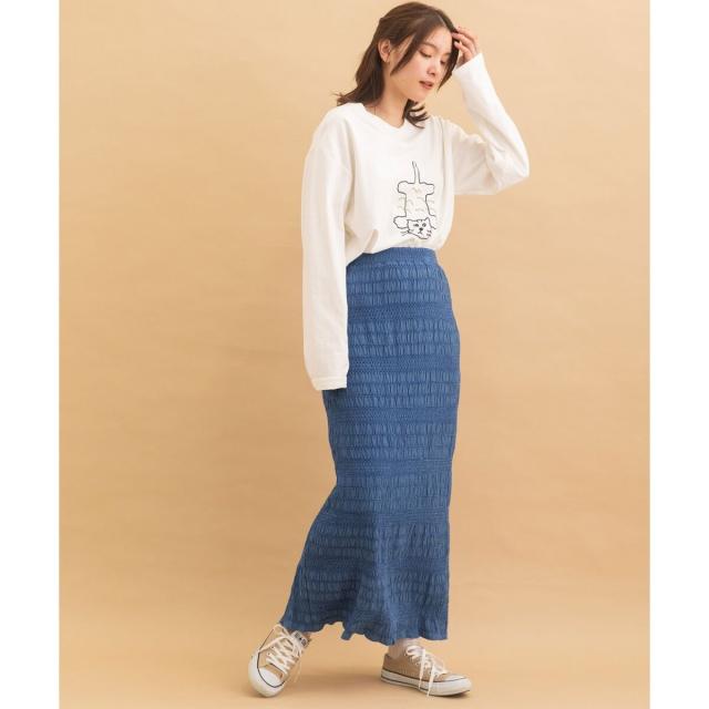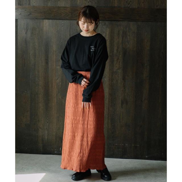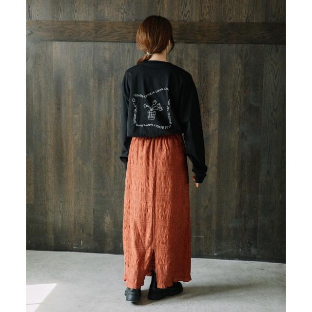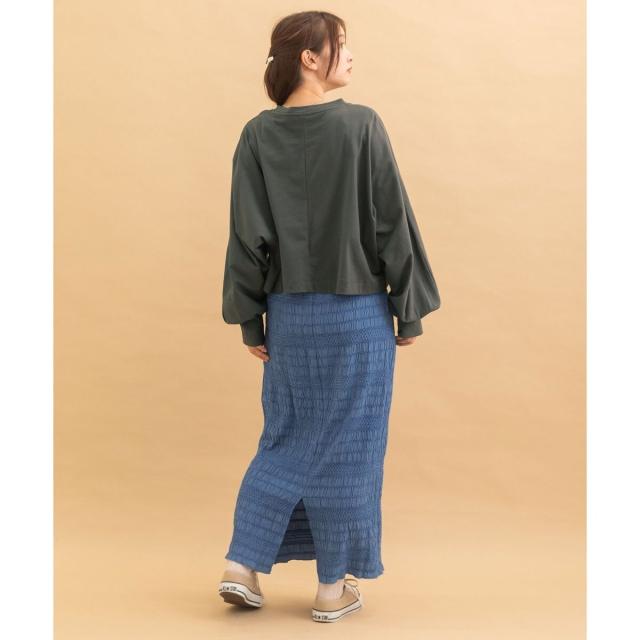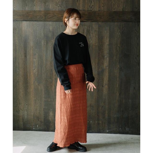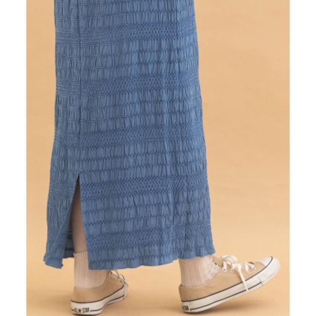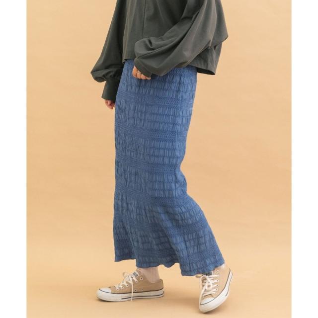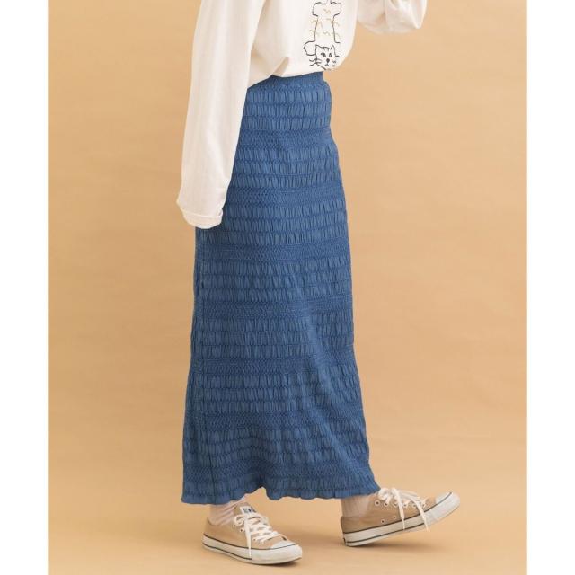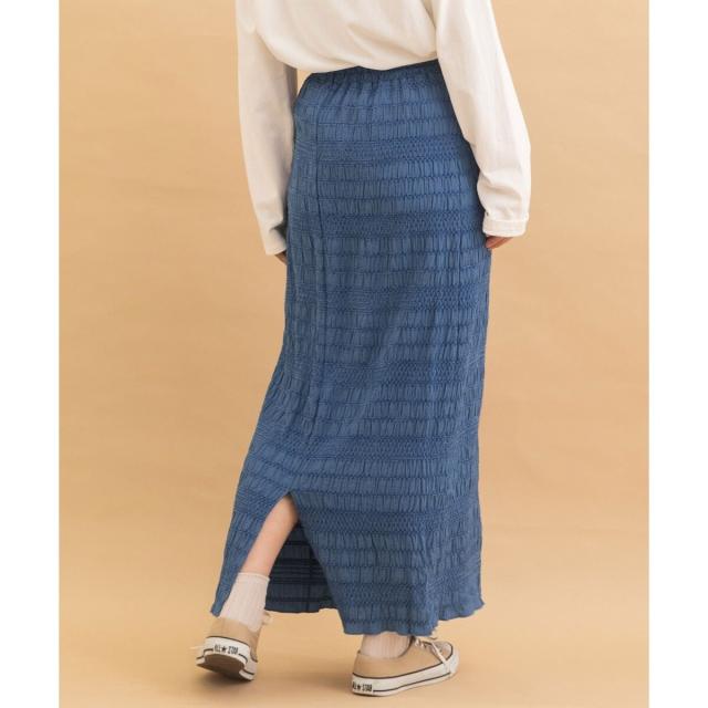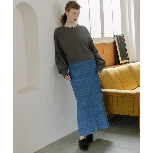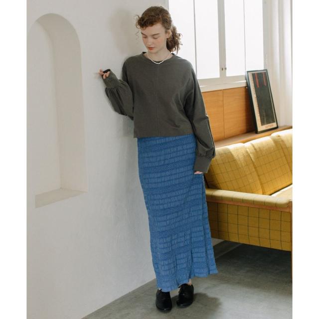 ・モールステッチのシャーリングが特徴的な生地を使用した、しなやかな女性らしいシルエットのスカート。