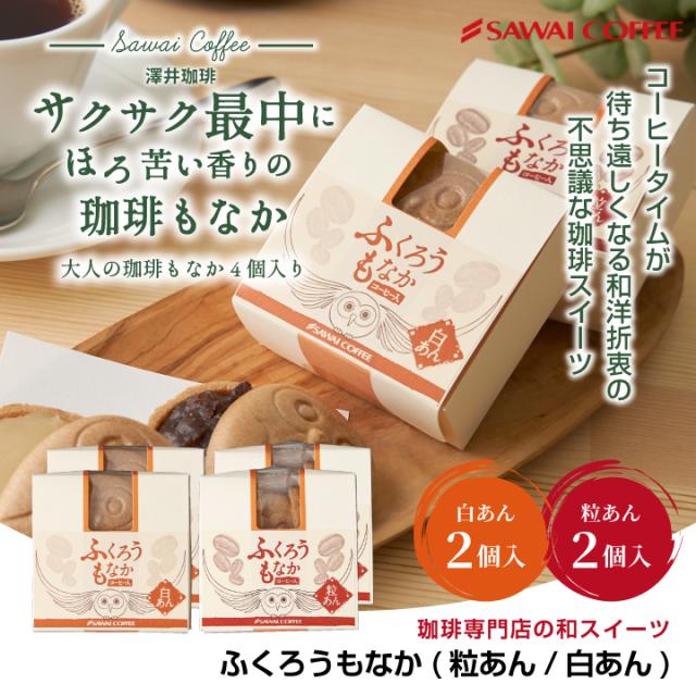 コーヒー専門店の和スイーツ ふくろうもなか 4個 和菓子 珈琲入り 最中 フクロウ 白あん モナカ 粒あん サクサク 和スイーツ ※冷凍便不可 コーヒーに合う 珈琲のお供 プチギフト お年寄り お供え 澤井スイーツ