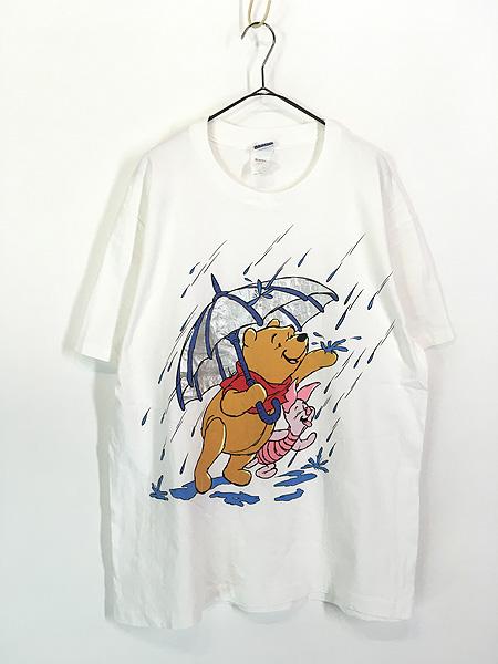 古着 90s USA製 Disney Pooh くまのプーさん ピグレット メタリック 傘 プリント Tシャツ L 古着