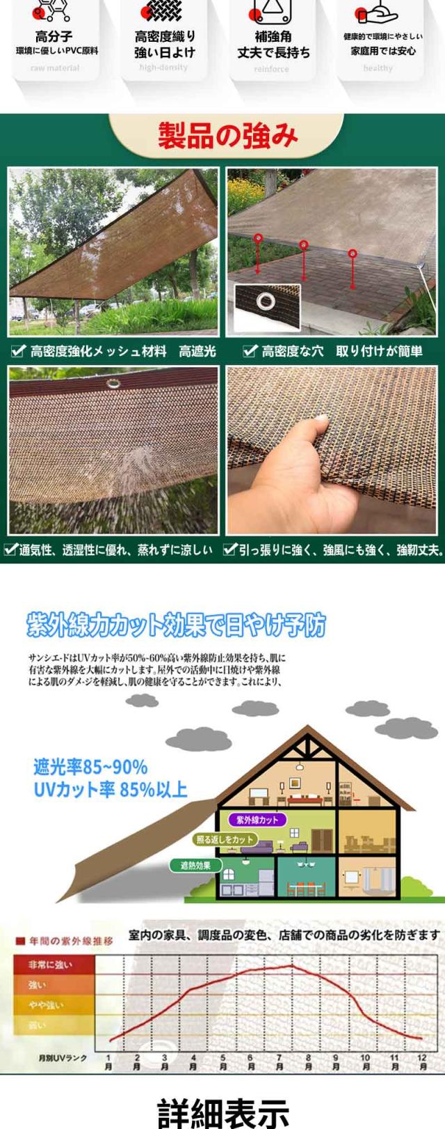 【最新改良版】日よけ シェード 遮光ネット サンシェード 日よけシェード 屋外 UV対策 UVカット オーニング バルコニー シェード ベランダ フェンス 紫外線カット 抗紫外線ネット95%