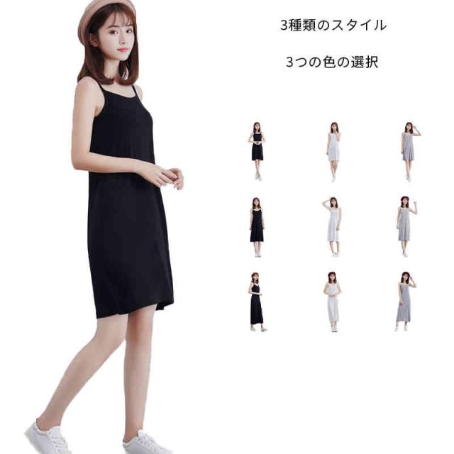 キャミソールインナー ゆったり 大きサイズ 透けない膝丈ミモレロングマキシレディースファッション トップス キャミソール