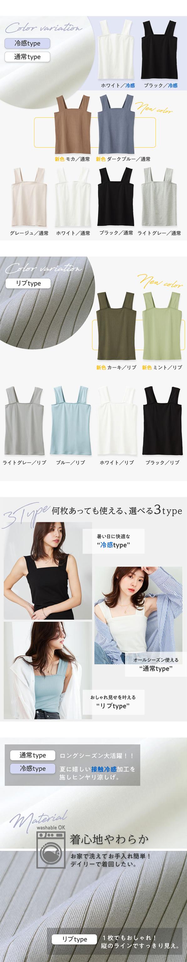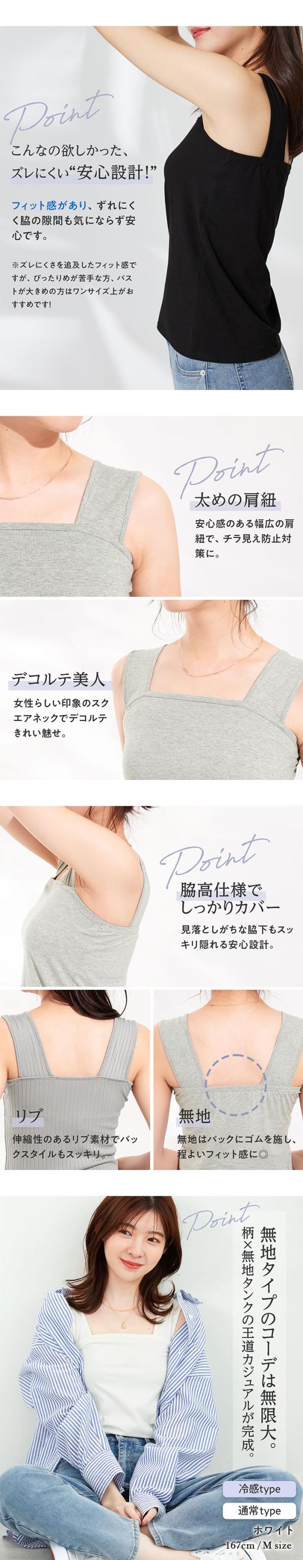 冷感 タンクトップ レディース インナー レディース タンクトップ レディース スクエアネック リブ ブラ紐 隠し インナー タンクトップ レディース 夏