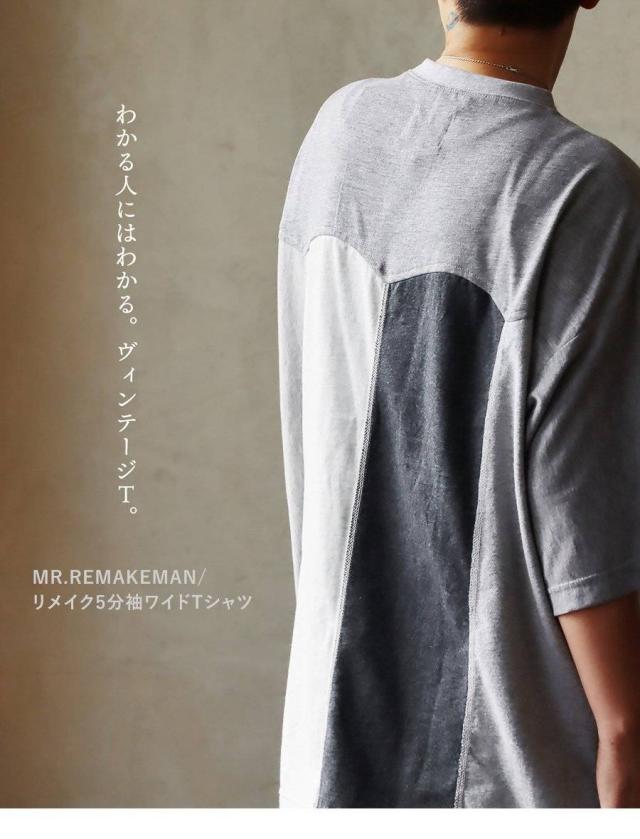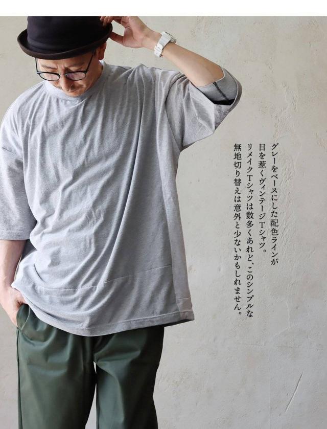 tシャツ 半袖 メンズ レディース リメイク 古着 夏 ワッペン ポケット 無地 配色 ワイド 大きいサイズ 体型カバー 二の腕 お尻 カジュアル パティ MR.REMAKEMAN ミスターリメイクマン