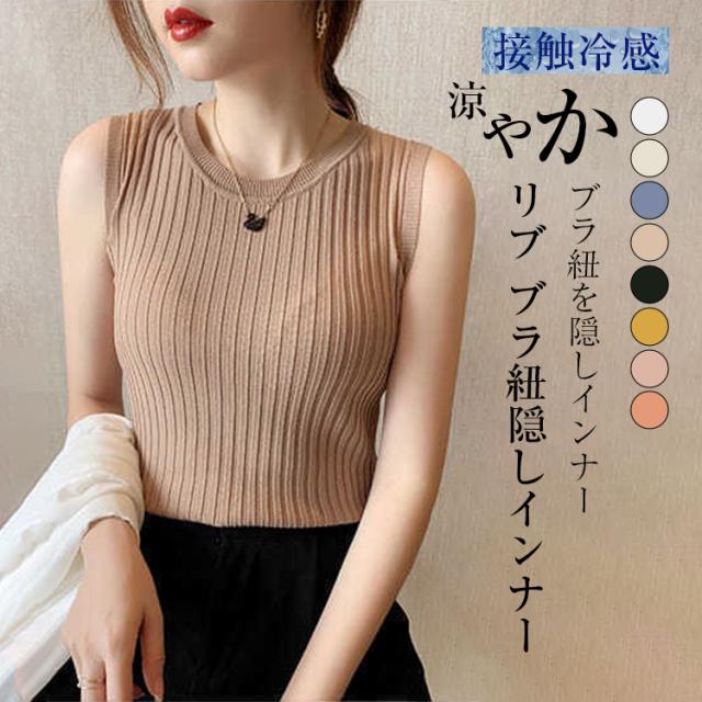 SS リブ 重ね着 タンク キャミソール インナー レディース トップス ブラ紐を隠せるインナーレディースファッション トップス Tシャツ カットソー