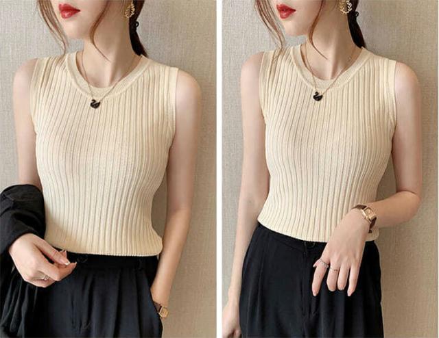 コーデを引き締めてくれる定番色もあり、20代30代40代50代と幅広い年齢の方に着用して頂けるスリーブレスのプルオーバーです。