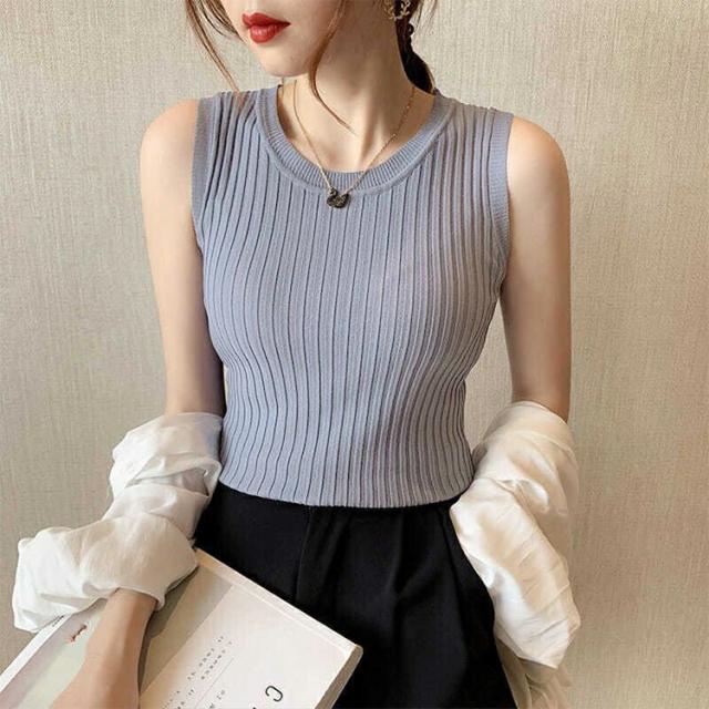 フィットしたスリムに着られるのでガウチョパンツやワイドパンツなどボリュームのあるボトムスとも好相性で使えるタンクトップ(タンク)。