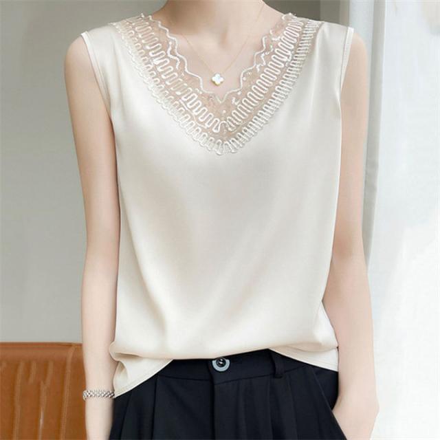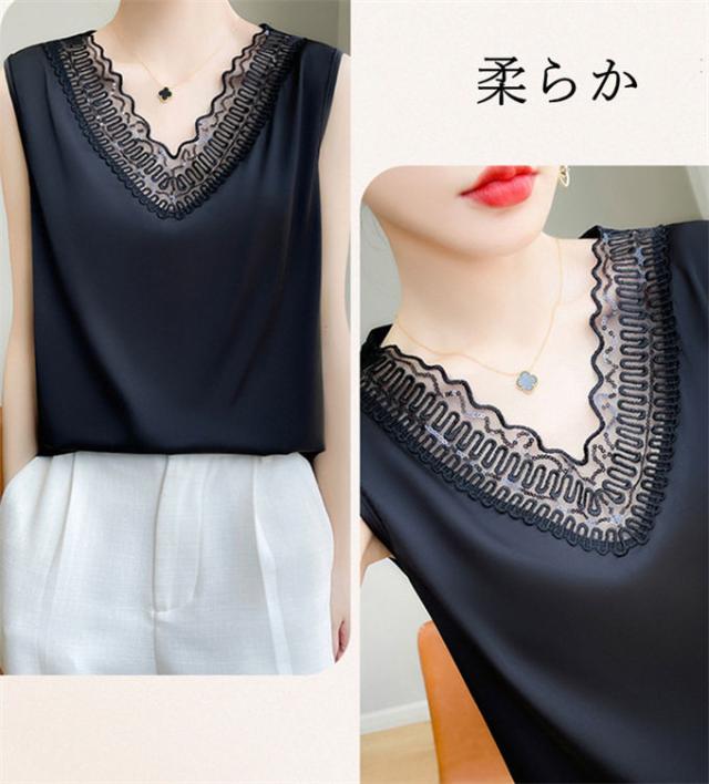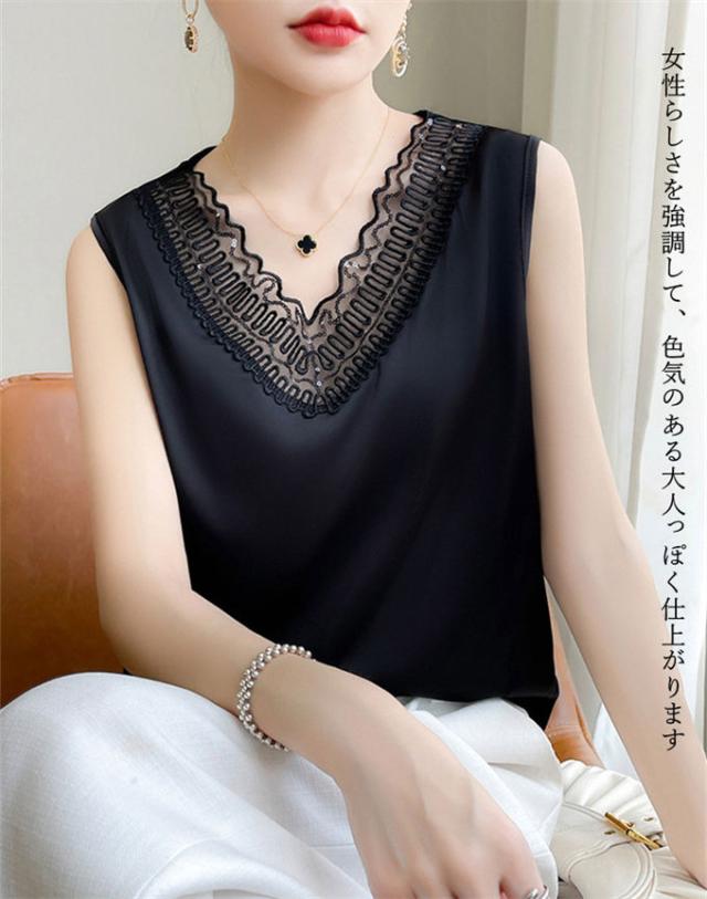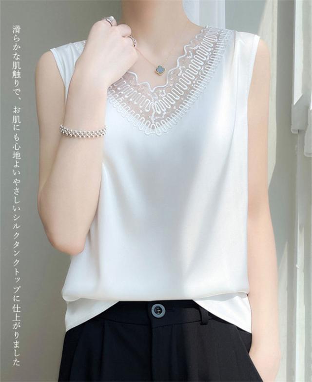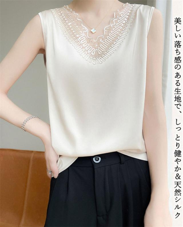 ▼滑らかな肌触りで、お肌にも心地よいやさしいシルクノースリーブブラウスに仕上がりました。