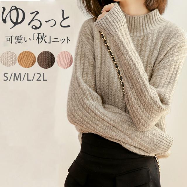 ニット セーター レディース トップス 秋冬 タートルネック ハイネック 長袖 厚手 ゆったり シンプル デザイン ロング リブニット 無地 カットソー ニットウェア きれいめ シンプル フリー ふん