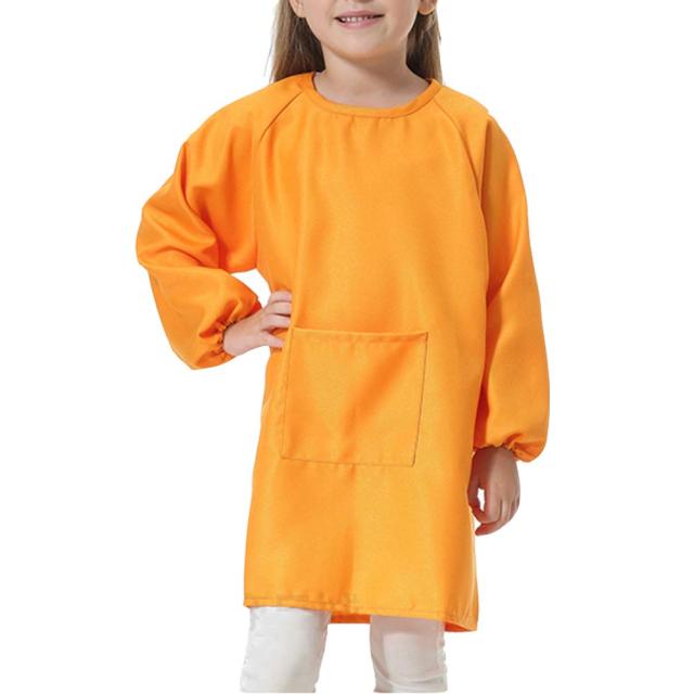 L(身長120-140cm)_オレンジ Emfay スモック 子供用 無地 エプロン 男の子 女の子 給食 お絵かき 幼稚園 保育園 全12色 オレンジ L
