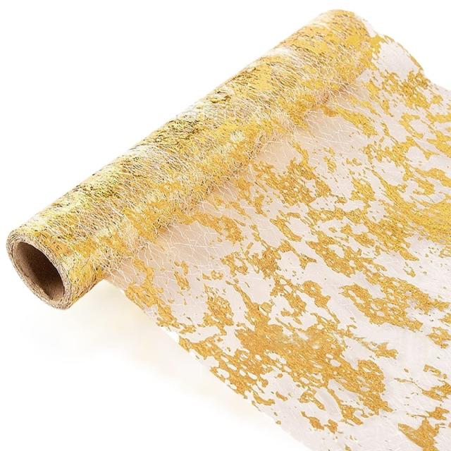 【高品質素材】テーブルランナーは、金箔付きのポリエステル生地ネットで作られており、軽くてきれいでスパンコールが美しく、丈夫で再利用可能です。