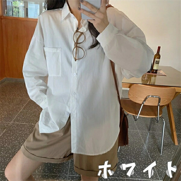 彼シャツ レディース服 トップス 女性 シャツ 大きいサイズ ホワイト ロング S M L 長袖 ビッグサイズ 女の子 女 かわいい オフィス 秋 夏 春 春秋 ロングシャツ ブラウス