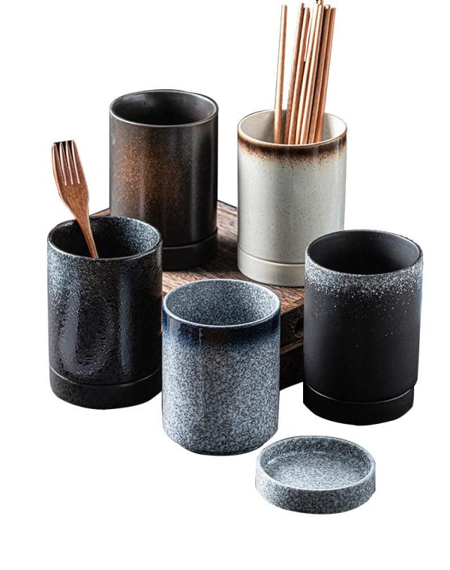 ???【】:おしゃれ和風なカトラリースタンドです、素朴な土の質感と味わいある釉薬で、キッチンやテーブルで映えるデザインです、素朴な土の質感や落ち着いた色合いは、生活空間に温かみを添えます。