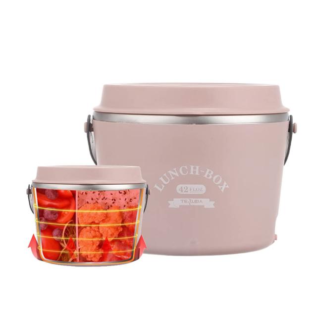 Pink Aseech 電熱弁当箱 電気ランチボックス 1.2L大容量 電気加熱式弁当箱 水必要なし 丸洗い おしゃれ フードウォーマー 家庭用 便利 健康 安全 (Pink)