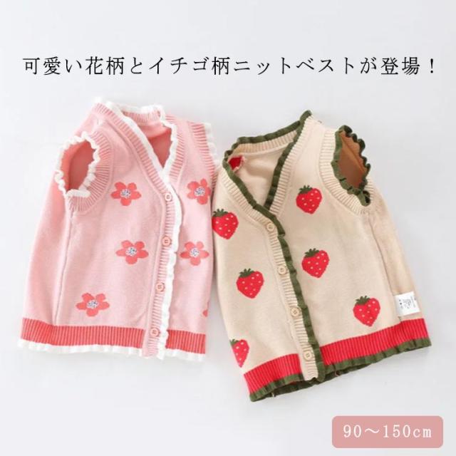 ノースリーブ 女の子 子供服 90cm キッズ 春秋 韓国子供服 Vネック 花柄 無地 シンプル 子ども イチゴ 前開き 100cm 110cm 120cm 130cm 140