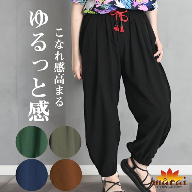 サルエルパンツ バルーンパンツ ジョガーパンツ ガウチョパンツ ワイドパンツ レディース メンズ ゆるっとこなれ感。rp61093 大人のアラジンパンツ ヨガパンツ 綿麻 ゆったり 大きいサイズ ウエストゴム 無地 プレーン