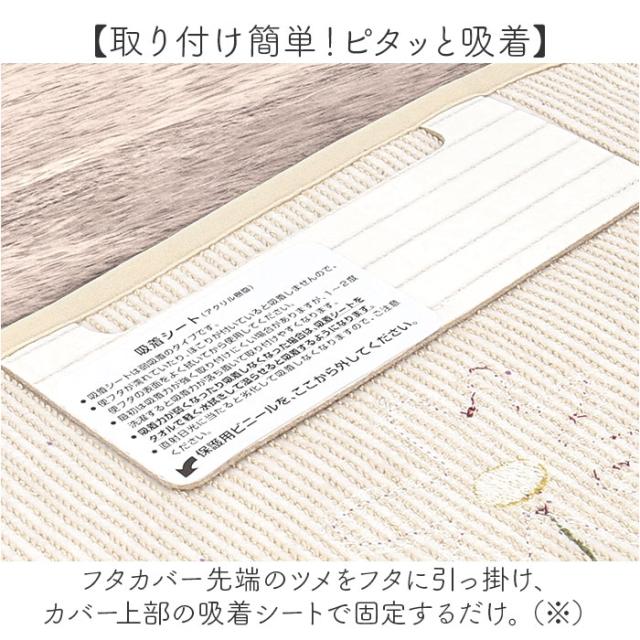 | 商品説明 | 【大人可愛い!ナチュラル仕様】 ・自然を愛するシビラ♪大きなお花がアクセントの「兼用フタカバー」が新登場。 【空間を彩るおしゃれな仕上がり】 ・庭に咲くツル花をデザイン♪花の部分はアップリケ、自然な風合いの綿糸使いもポイント。 【ふんわり心地よい、柔らかな生地感】 ・程よい厚みの綿100%素材を使用。触り心地もバツグン。 【異なるタイプの便座に対応】 ・普通便座にも温水洗浄暖房便座にも使用可能。引越し先でもそのまま使えて、買い替え不要。 【取り付け簡単!ピタッと吸着】 ・フタカバー先端のツメをフタに引っ掛け、カバー上部の吸着シートで固定するだけ。 (※)弱吸着タイプのシートです。 【丸洗いできてお手入れラクラク】 ・汚れが気になったら、ネットに入れて洗濯機洗いOK。いつも清潔をキープ。 (※)洗濯機の弱モードor手洗いモードで単独洗いしてください。一部のドラム式洗濯機では、洗濯や脱水ができない場合がございます。 【殺風景なトイレを華やかに演出】 ・シンプルな空間がパッと明るく!お気に入りのアイテムで、素敵にコーディネート♪ |