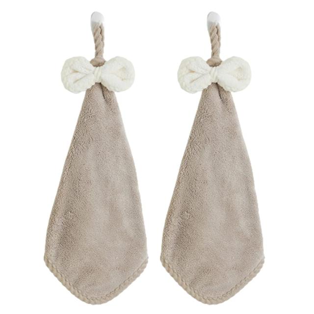 ブラウン お手拭きタオル ループ付きタオル 2枚セット 可愛い蝶結び付き ハンドタオル 吸水 速乾 タオル 手拭きタオル 洗面所 キッチン 紐付きタオル 保育園 家庭用 ループタオル 女の子 男の子 プレゼント ブラウン