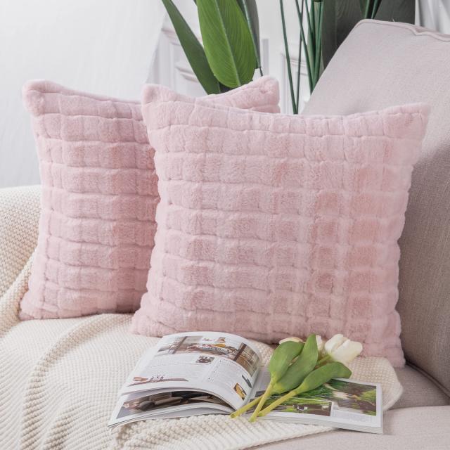 ピンク_55 x 55 cm Madizz クッションカバー 2枚セット 柔らかい ぬいぐるみ ショートウール ベルベット 装飾的な 枕カバー 贅沢 スタイル クッションケース ソファ用 寝室用 55*55 cm ピンク