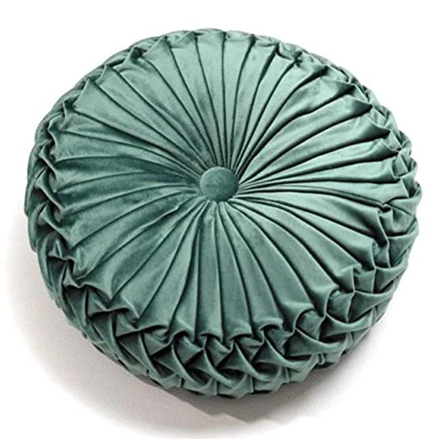 ダークグリーン 座布団 クッション 厚め14cm 丸型 Cnstone 円形 おしゃれ 可愛い ラウンドクッション フロアクッション 座布団 丸座布団 座椅子 座ぶとん 姫系 アジアン ギャザー プリーツ 花様 分厚い ベルベット 北欧 柔らかい オシャレ座布団 背もたれ 引っ越し新生活 (ダークグリーン)