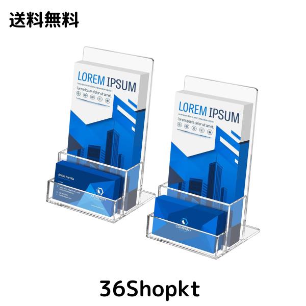XMSSAA アクリル カタログ・POP広告スタンド 名刺ホルダー付き 2個セット 透明 A4縦型 カタログケース パンフレット立て 小冊子、チラシ