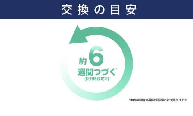 ●使用期間: 約6週間(開封時設定での試験時の状況に基づく。車内の環境や運転状況等により異なります。)