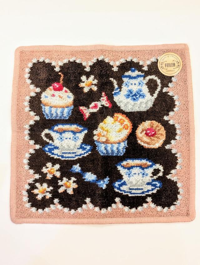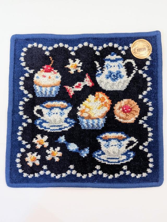 FEILER フェイラー タオルハンカチ ベージュ ネイビー SWEET TREAT 正規品 swet25988 カフェ紅茶スイーツ 限定品 敬老の日