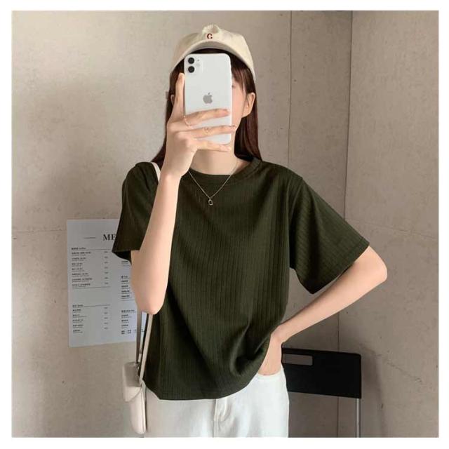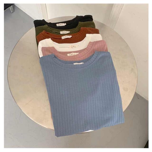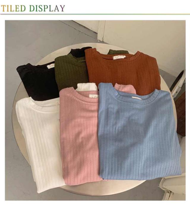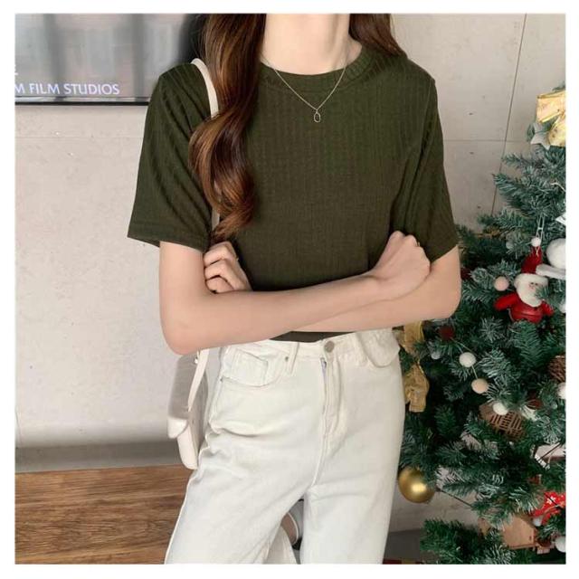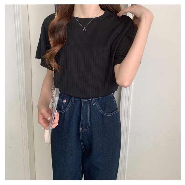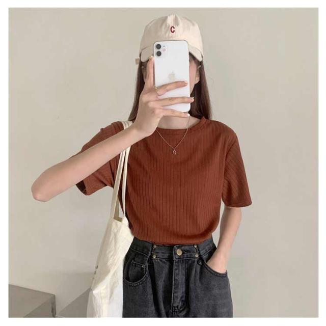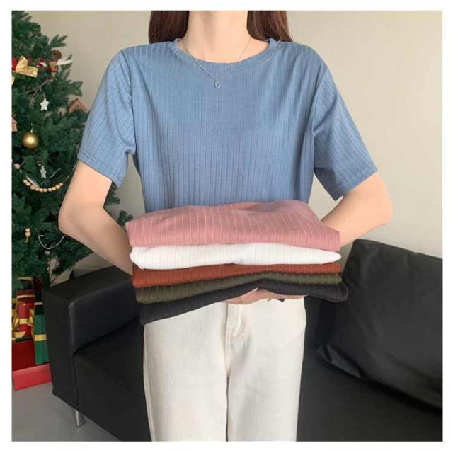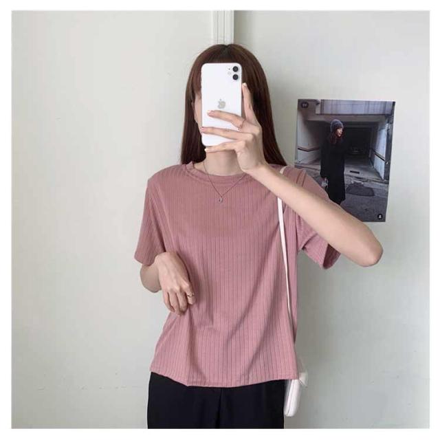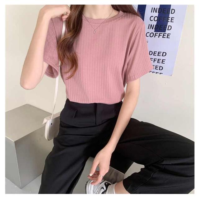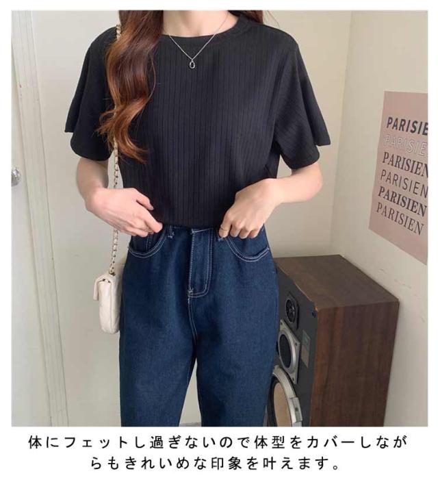 カジュアル 韓国風 リブ 無地 丸首 柔らか Tシャツ 単色 きれいめ トップス クールネック カットソー 半袖 可愛い 半袖 レディース 春夏 薄手 お洒落 ゆったり シンプル 普段着