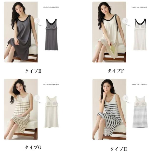 キャミワンピ ロング丈 カップ付き レディース カップ付きワンピース タンクワンピース ワンピース ノースリーブ タンクワンピース ひざ丈 体型カバー ルームワンピース ボーダー ルームウェア Tシャツワンピース ゆったり パジャマ 涼しい ひんやり 部屋着 20代 30代 40代