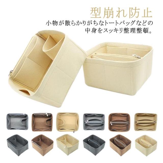 バッグインバッグ 型崩れ防止 ファスナー 収納力抜群 自立 フェルト 小さめ バッグインバッグ 整理 仕切り整理 軽量 縦型 シンプル バッグインバッグ 小物入れ