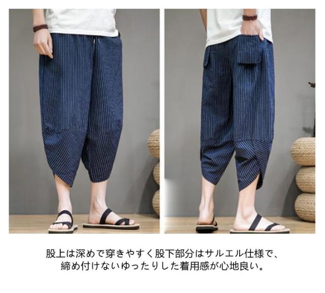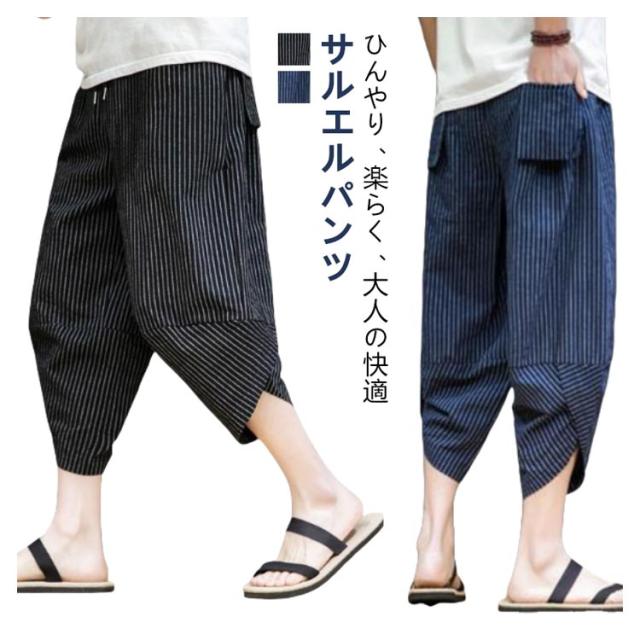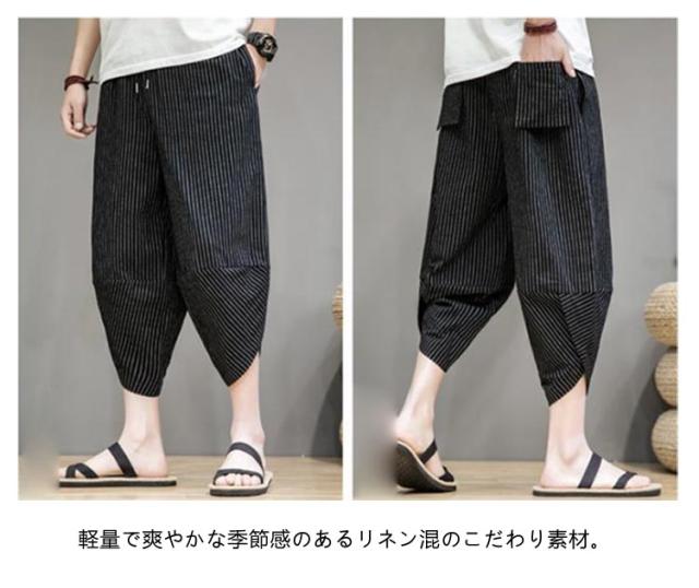 リネンパンツ メンズ 大きいサイズ ゆったり リネン ズボン 7分丈 夏用 サルエルパンツ ハーフパンツ 麻 ワイドパンツ イージー ぱんつ 涼しい ボトムス バルーンパンツ ひざ下 エスニック 袴 カジュアル クロップドパンツ 春