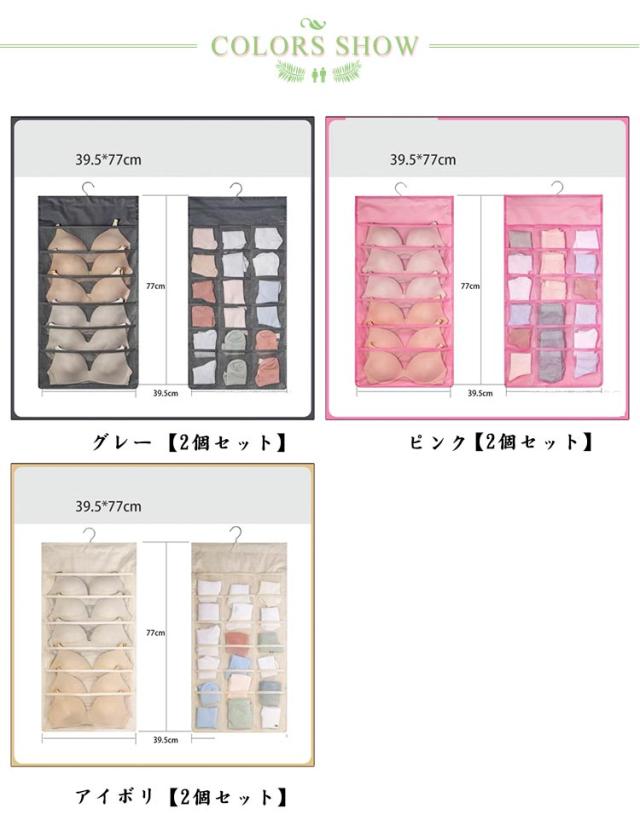 2個セット 仕切り 24ポケット ブラケース ウォールポケット 下着 吊り下げ収納 省スペース 収納 2個セット ハンガー式 おしゃれ ブラの型崩れ防止 衣類 収納 仕切り 壁掛け 収納ボックス 小物 靴下 収納 防水 大容量 寝室収納