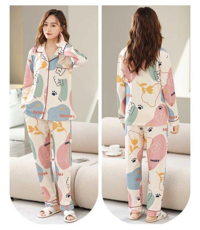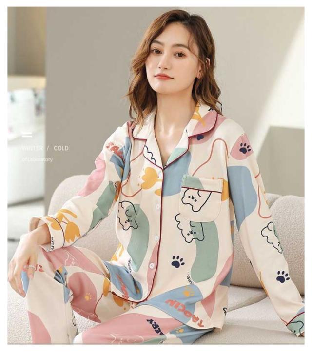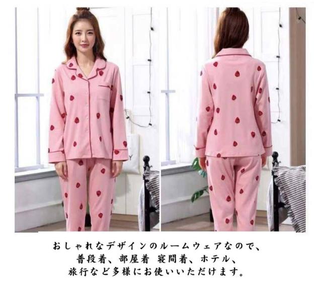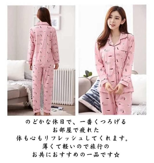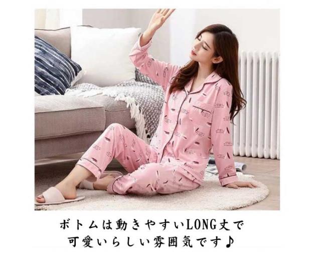 上下セット パジャマ ルームウェア 春 トップス 柔らかい レディース 通気性 暖かい 冷え対策 冬 ロングパンツ 2点セット 前開き 折り襟 春夏 長袖 レディース 冷房対策 保温性 寝間着 寝巻き ナイトウェア